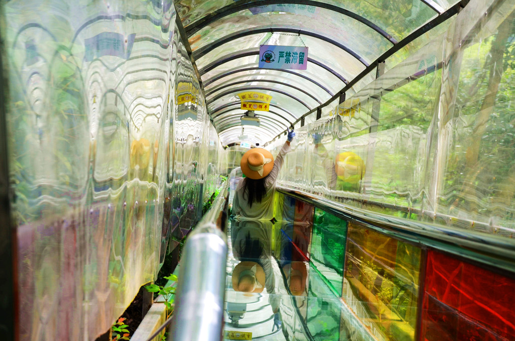下山有玻璃滑道,能将游客迅速到达山下,不用徒步那么累啦。坐滑道要注意保持一定的距离,以免追尾。Butterfiy美女嫌我滑得慢,她不时用双脚卡住两侧来刹车。