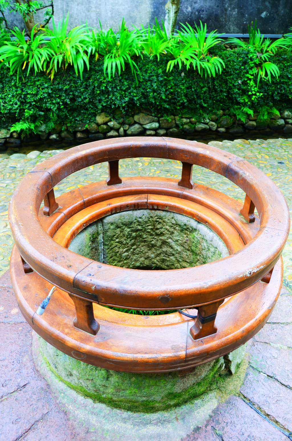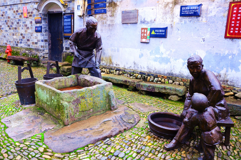 镇子里的水井很多,古时居民喝水全靠它了。凑近探头俯看,竟然不是枯井,是有水的活井。
