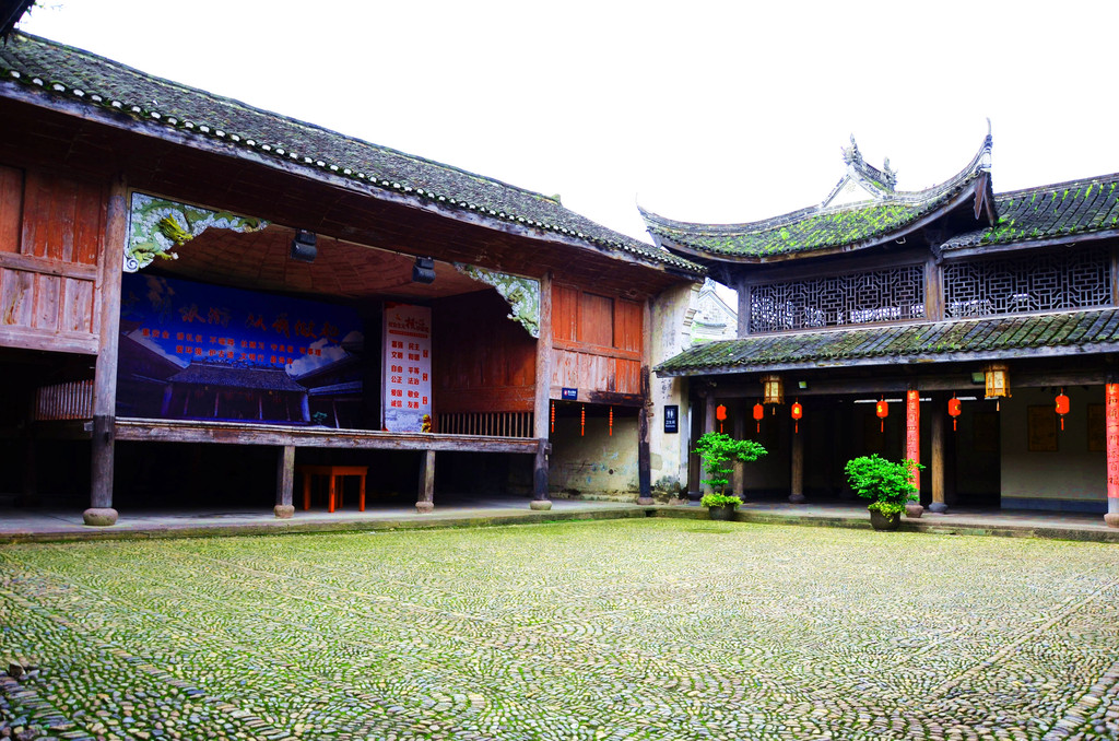 中国的八卦是一门深奥的学问,童姓祖先按“回”字九宫八卦式布局建筑,将白溪水引进镇中,一条小水渠绕镇一圈,使古镇多了一份飘逸,多了一份灵性,每家每户门前都哗哗作响,溪水日夜回唱着古镇的故事。虽无游船,但居民进入家中须过青石板小桥才行,不是水乡,胜似水乡。