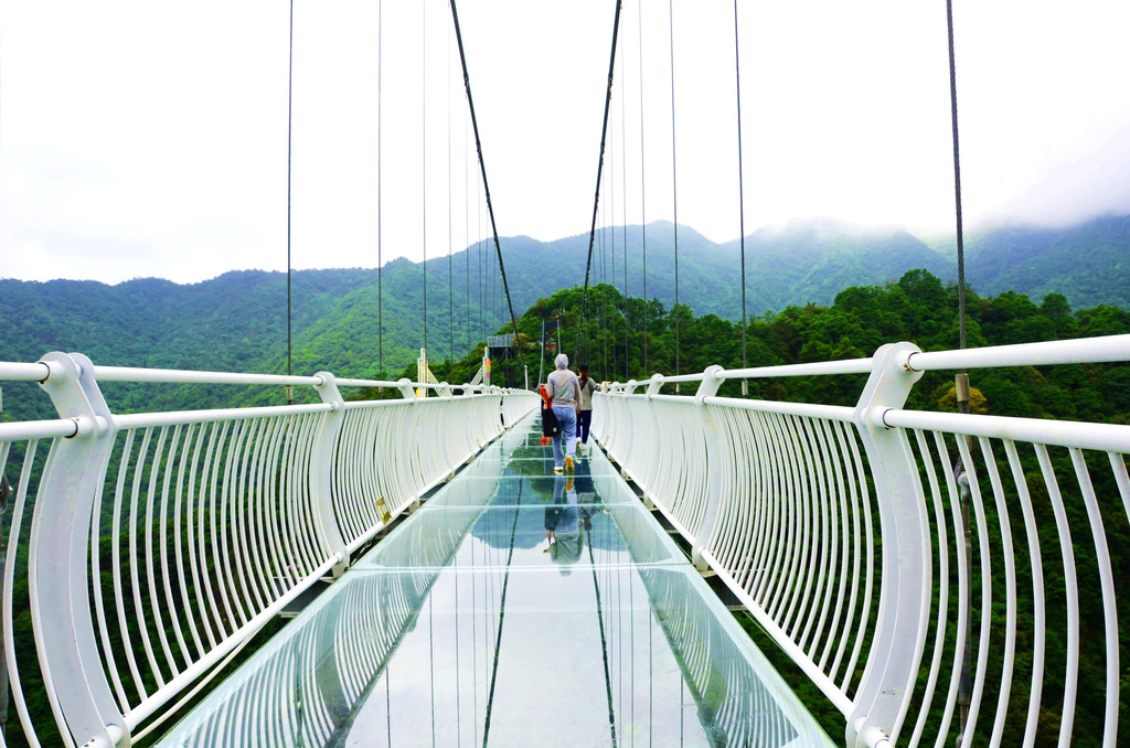 我最讨厌景区为赶时髦而给玻璃桥弄个5D效果,这纯属一个噱头,庆幸梁皇山有自己的定力。