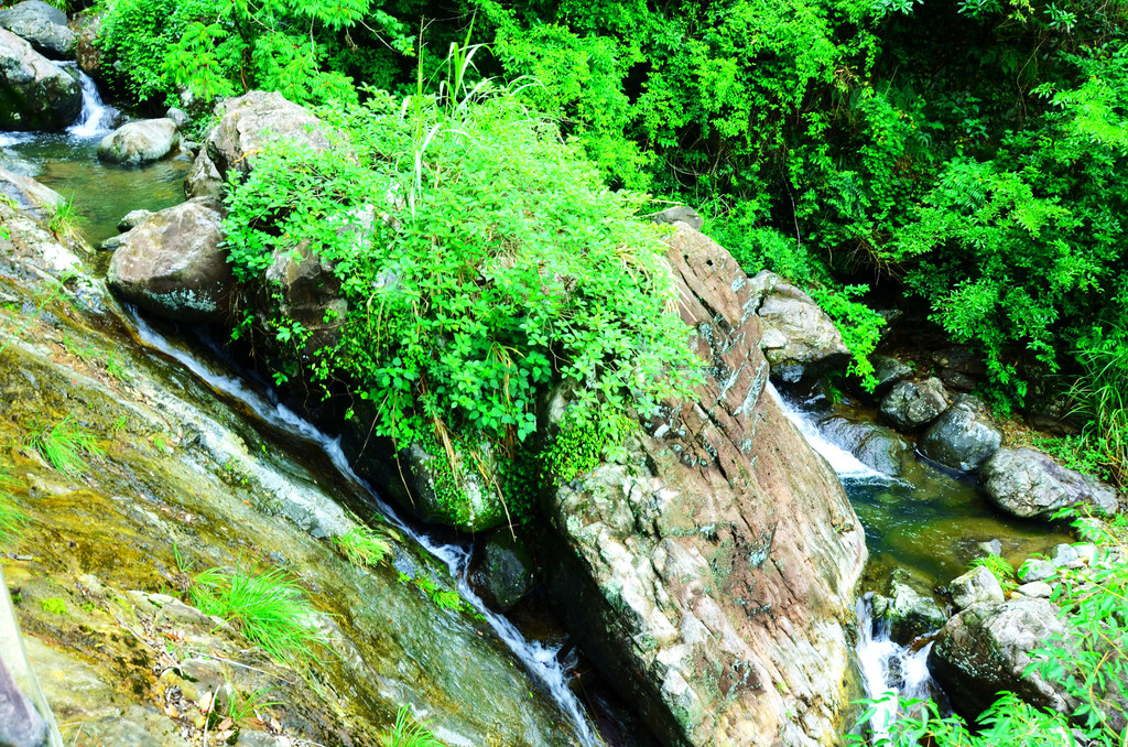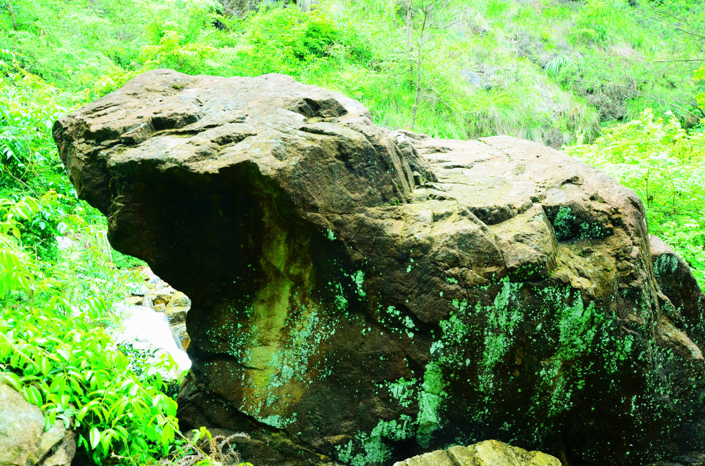 直往上走,便开始听见溪水哗啦的声响。水中有块巨石,名曰:石来运转。彩头很好,石头的特色不太明显。