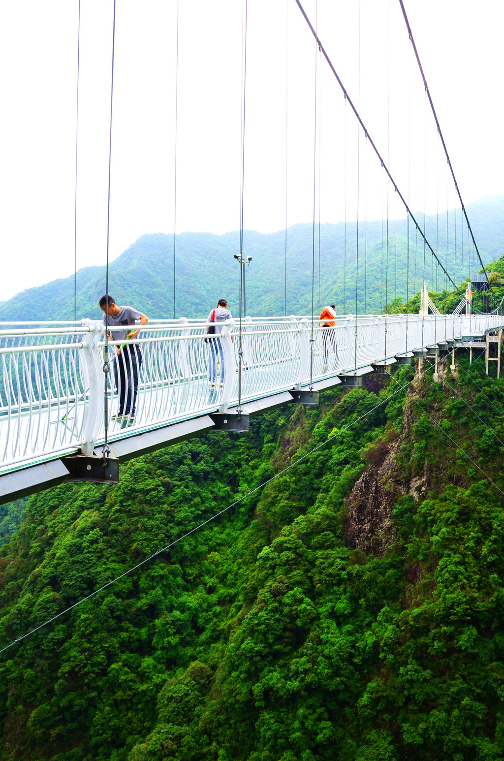 与它们连着的是玻璃桥,它犹如一条白带横跨长空。