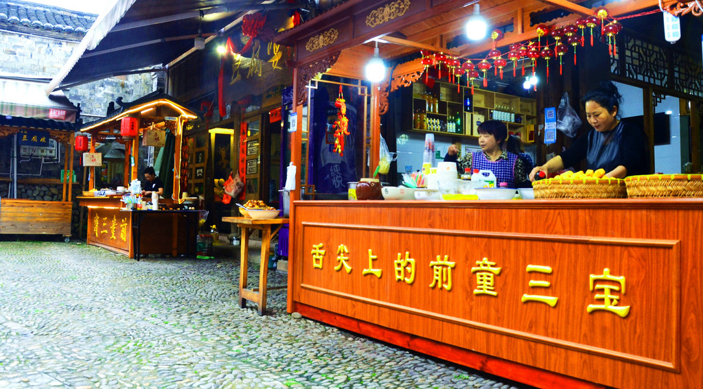 如果走累了,请不要放过古镇里的美食,一些当地人在路边摆摊,有的还挂着获得的奖状,路过时老板很热情地请我们免费试吃,你可以尝尝“前童三宝”(前童豆腐、前童香干、前童空心腐),美味无比,还可以试吃到饱。