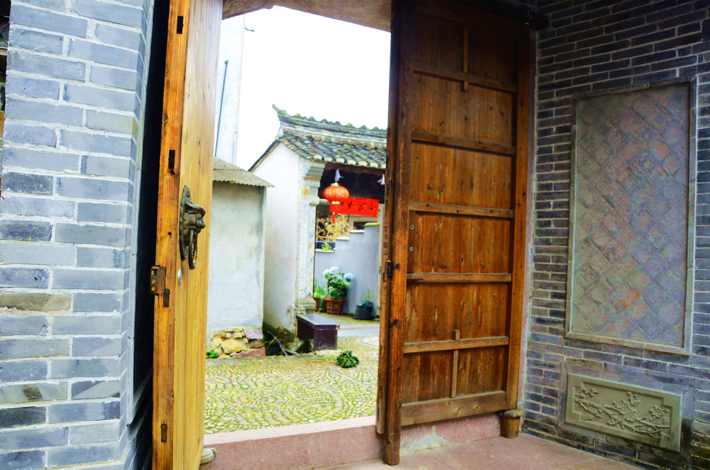 青藤白墙黑瓦,石头镂花窗户,雕梁画栋门楼,苍凉中显现出昔日的繁华。
