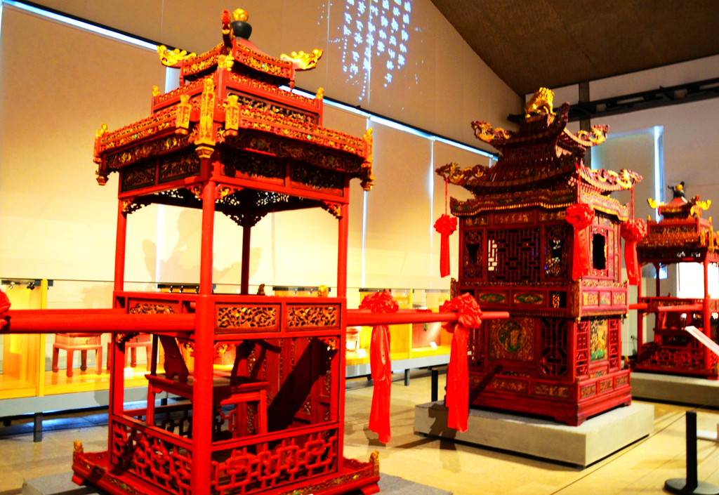十里红妆文化园里面设了10个展厅,收藏了花轿、床、箱柜、桌椅、梳妆奁等各类红妆藏品2000余件,再现了人们对美好婚姻生活的憧憬。