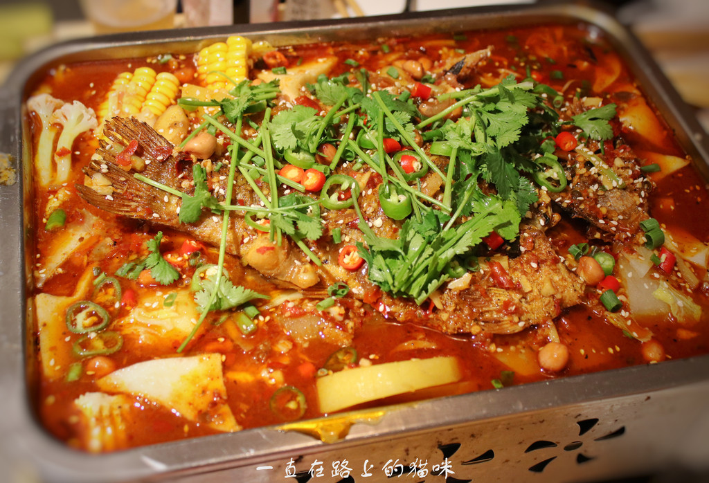 招牌烤鱼:鱼肉鲜嫩,青花椒的麻融入汤汁中,鱼肉浸满了汤汁更入味。配菜饱吸汤汁,口感竟然比鱼还要美味。