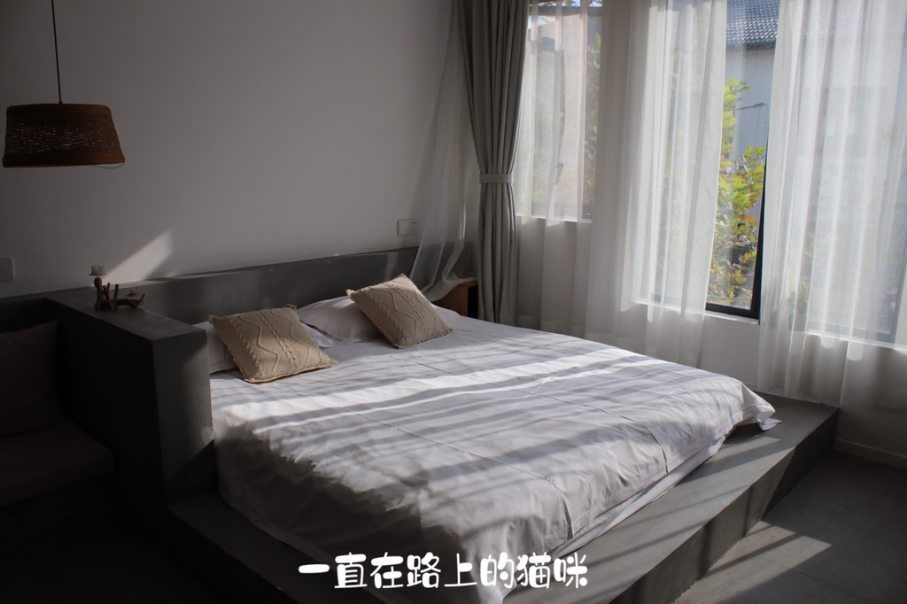 清晨在鸟叫声中醒来,位置在西栅景区附近,吃的玩的都有。早晨阳光撒在床铺上,极具设计感的设计,这才有了度假的感觉呀!