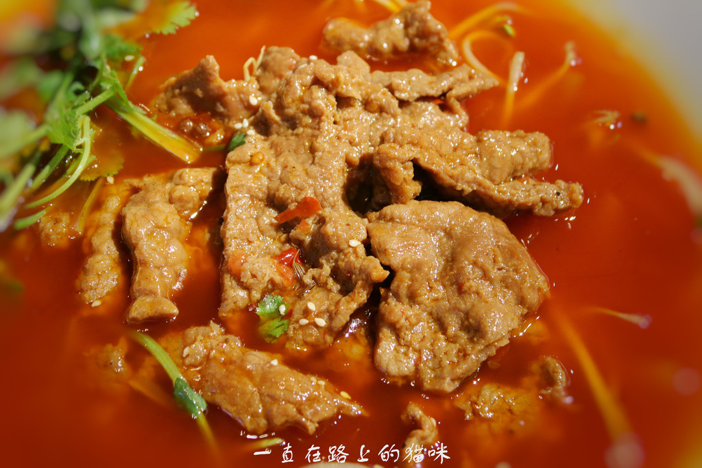 大刀沸腾牛肉:的香辣味闻了就口水流下来。牛肉厚而大片,抓了少许淀粉口感嫩滑。配菜吸收了汤汁入味好吃。