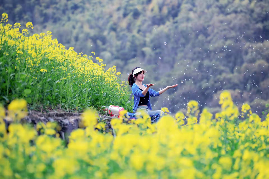 “这里非常浪漫,非常梦幻,这种身临其境的感觉非常棒!”“感觉挺舒服的,你看这里一片片的都是梯田式的油菜花,现在都是金灿灿的,闻着淡淡的花香,真是让人心旷神怡啊!”