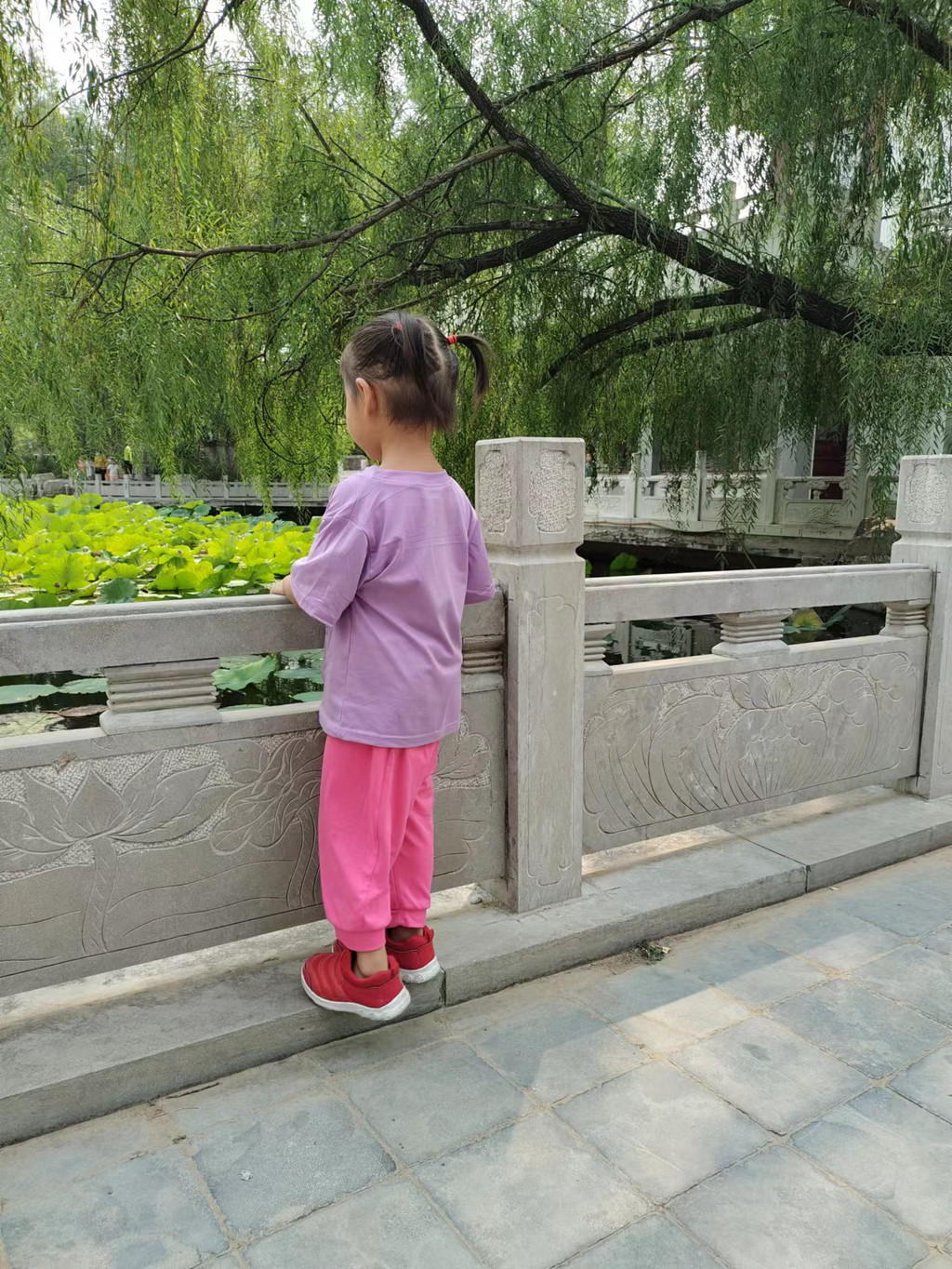 西沽公园内种满了柳树,桃树,苹果树等,树林的旁边,河流的上边架起了一座座小桥,小桥流水,别有一番风味