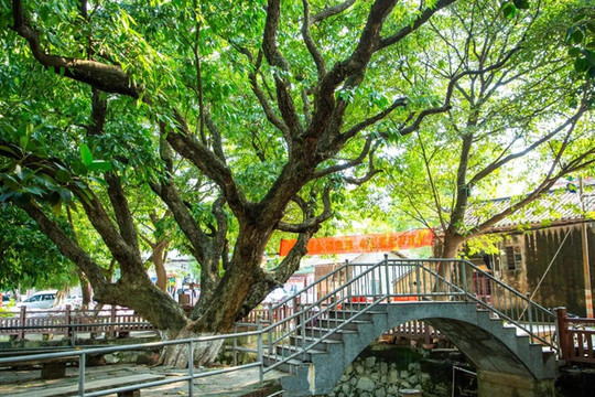 坐在凉棚里的村民告诉小编,水翁头凉棚以前又叫细涌尾凉棚,而眼前的这棵水翁树已经有两百多年的历史了,陪伴了很多代新基人的成长。而那座小桥以前是用木头做的,村民直接叫它为独木桥。