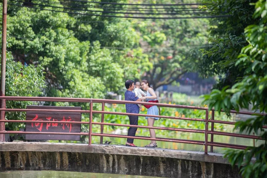 北坊凉棚是麻涌现存最大的凉棚之一,旁边是百年老榕树,枝干盘根错节,十分壮观。右边还有一座孔桥,走在上面有一种瞬间穿越回古代的感觉。