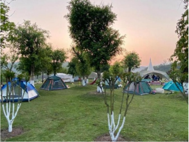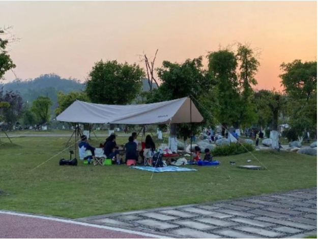 还有的人在草坪上BBQ,还在帐篷上挂了几个小彩灯,闪闪亮亮的感觉有一瞬间像在泰国的海边。疫情之下不能出国游玩,但来心景露营感觉也是个不错的选择哦~