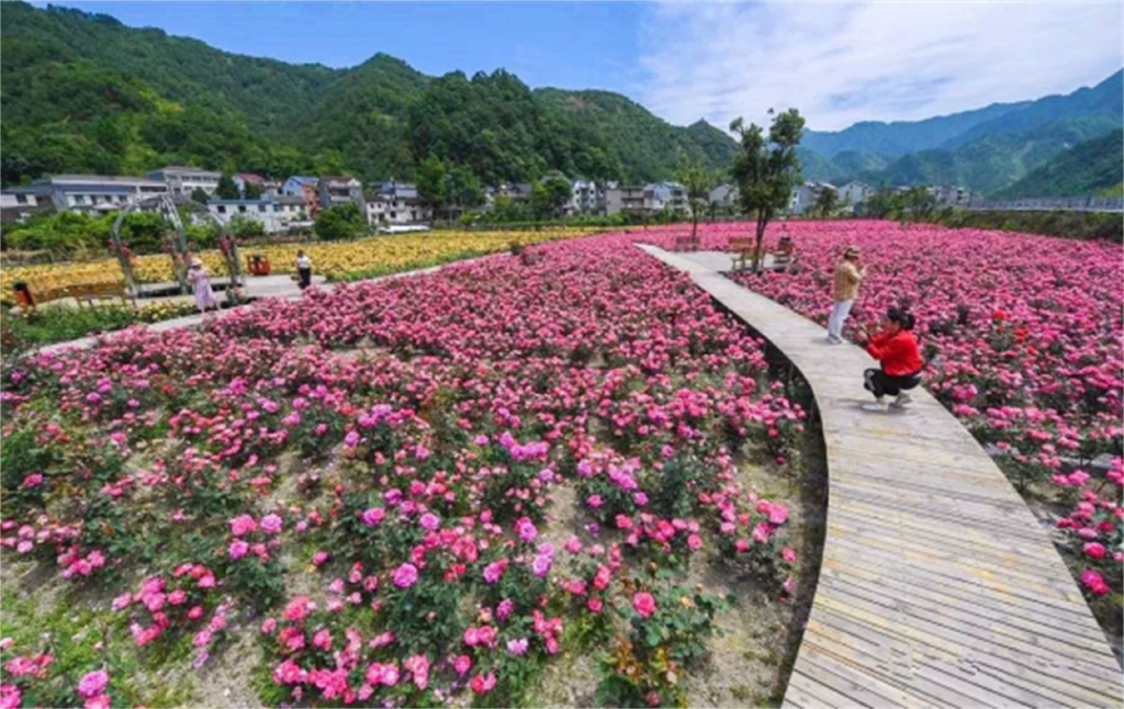 五一期间,位于清凉峰镇新峰村的玫瑰园已进入盛开期,这里的玫瑰品种达到100多种,漫步其中,裙摆沾染了一缕淡淡的花香,于风中缱绻着。