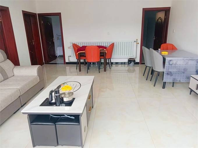 民宿有独立的客厅,绵软的沙发带来一丝放松的感觉,并配有茶具,麻将机提供游客使用,独立的厨房可以摆放开自己做的所有美食。