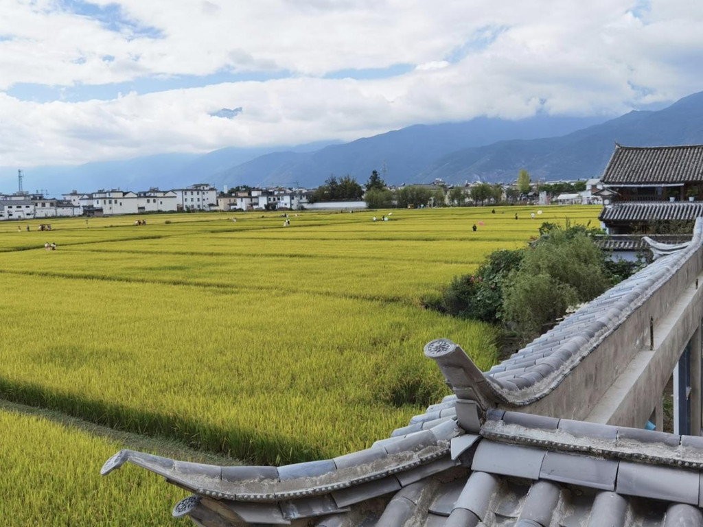 喜洲麦田更不用说了,打卡的人超级多。这个背景墙对应的其实就是喜林苑。这时候的稻田很好看,已经出现了黄色。