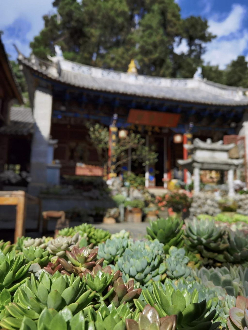 从感通寺继续向前走就会看到寂照庵。国内我去过很多寺庙,但是尼姑庵很少去,主要是国内的尼姑庵真的很少。这次,我们就遇到了寂照庵。据说这里还是中国最美的尼姑庵。和寺庙感觉不一样,这里确实觉得特别小清新。万万没想到,里面还有超级多的多肉植物。而且,这些植物都长得很好。