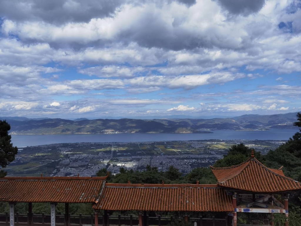 在中和寺可以多停留一会儿。我个人觉得,这里是俯瞰大理最好的地方。看看狭长的洱海,漂亮至极。从这个高度,几乎要看到洱海的全貌了。