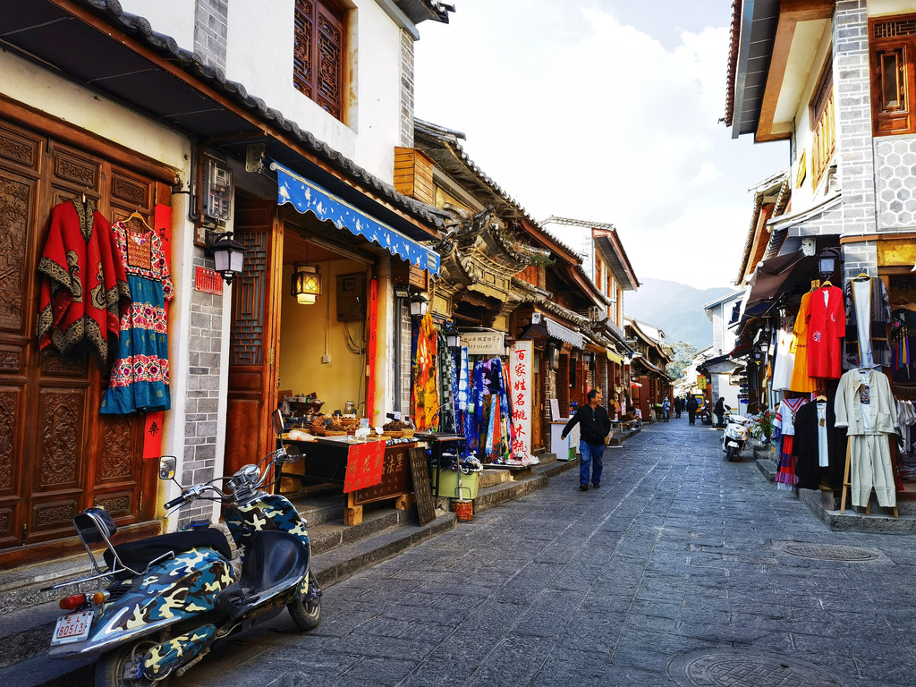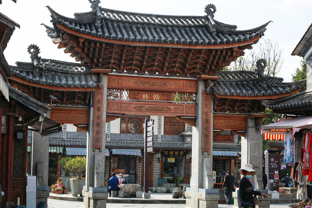 疫情管控期间,在门口就有测体温、扫健康码的管控措施。沿着青石板路,慢悠悠地向喜洲古镇四方街方向前行。街道两边商铺林立,偶有几家闭门谢客的,估计与疫情影响也有些关系吧。