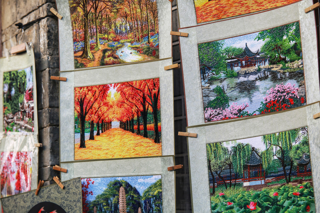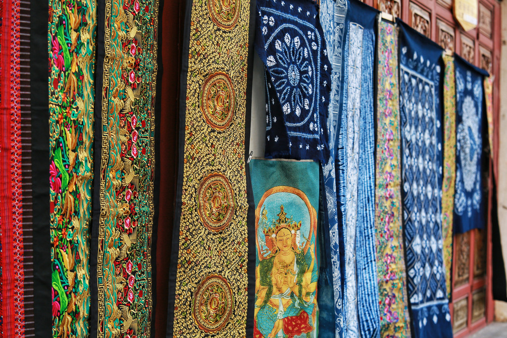 途经大榕树、喜洲小学。街道两旁,有好多售卖扎染工艺品的,挂在墙上或门店上,也是一道靓丽的风景,顺带给老人讲解白族扎染的工艺。经过“清凉小屋”,比较好吃的网红老冰棍,也因为天气寒冷原因,大门紧闭了。
