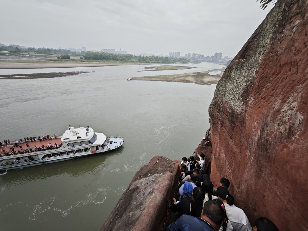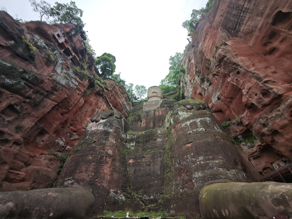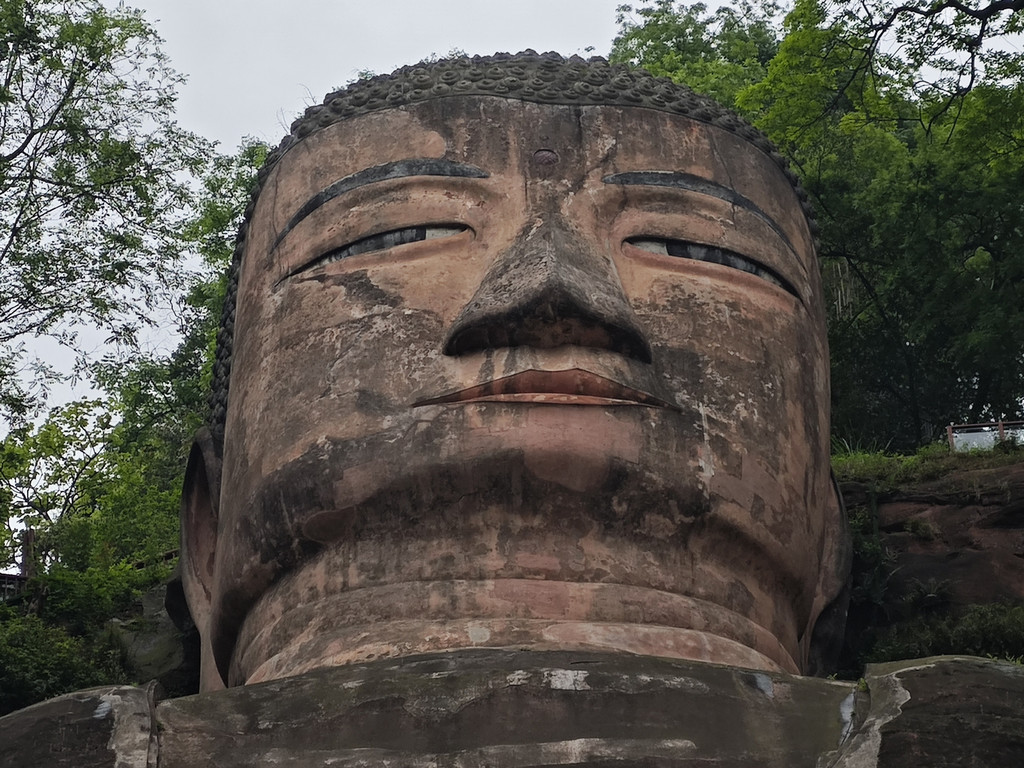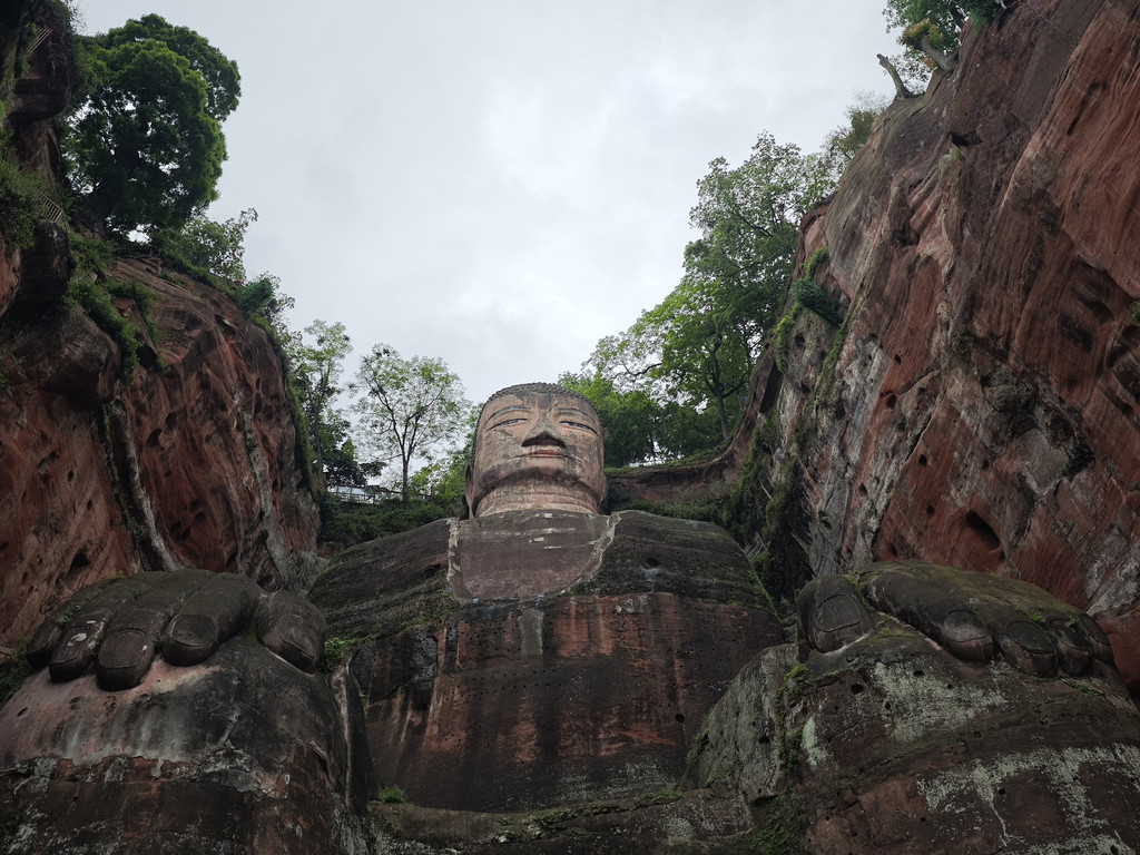 乐山大佛,位于四川省乐山市南岷江东岸,是中国最大的一尊摩崖石刻造像,也是世界文化遗产之一。它是一座弥勒佛坐像,通高71米,头高14.7米,肩宽24米,是一座典型的弥勒佛造像。乐山大佛的建造始于唐代开元元年(713年),历时90年,完成于贞元十九年(803年),由海通禅师发起,并经过三代工匠的努力完成。乐山大佛的建造目的是为了减缓凌云山三江交汇处的水流湍急,保护过往船只的安全。大佛依山临江而建,气势磅礴,具有极高的历史、文化和艺术价值。