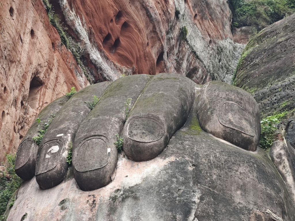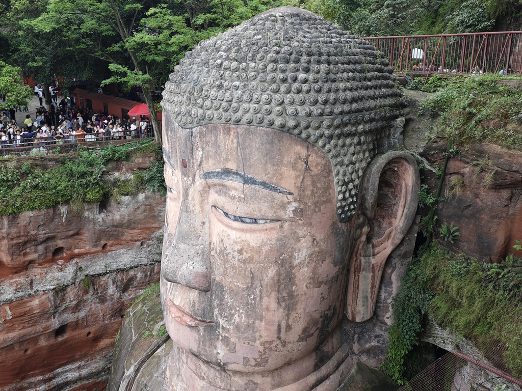 乐山大佛不仅以其宏伟的规模著称,还因其精湛的雕刻工艺和独特的地理位置而闻名。大佛的发髻上共有1051个,耳朵长达7米,鼻长5.6米,手指长8.3米,从膝盖到脚背的长度更是达到了28米。这些数据充分展示了古代工匠们的高超技艺和无尽智慧。