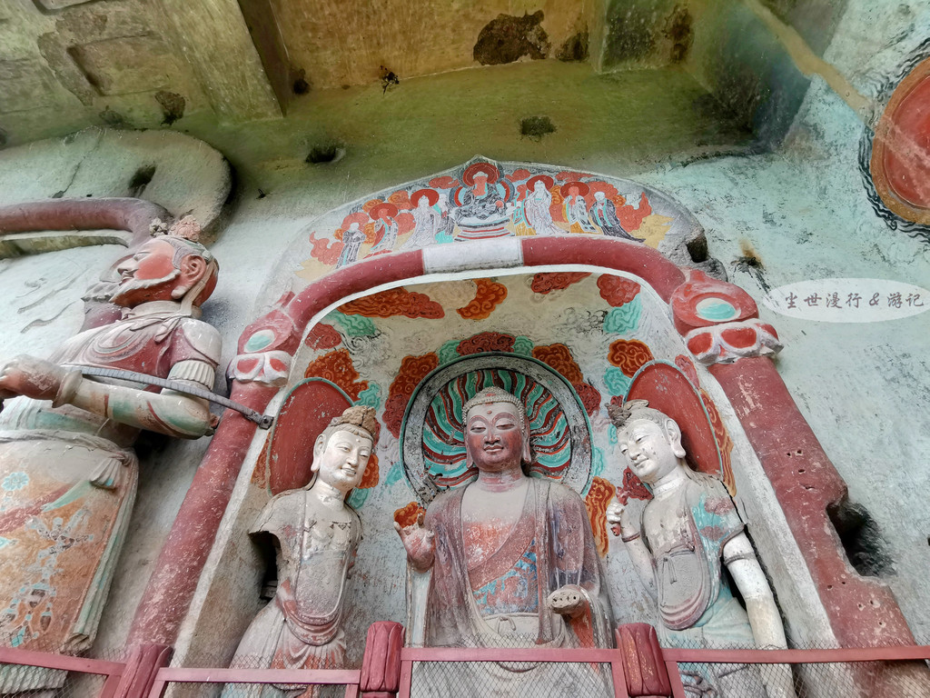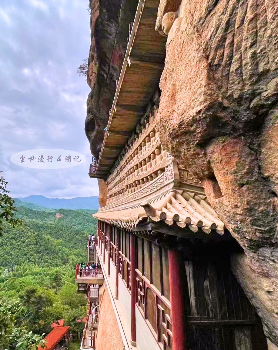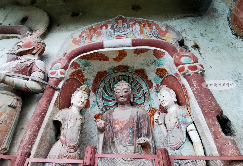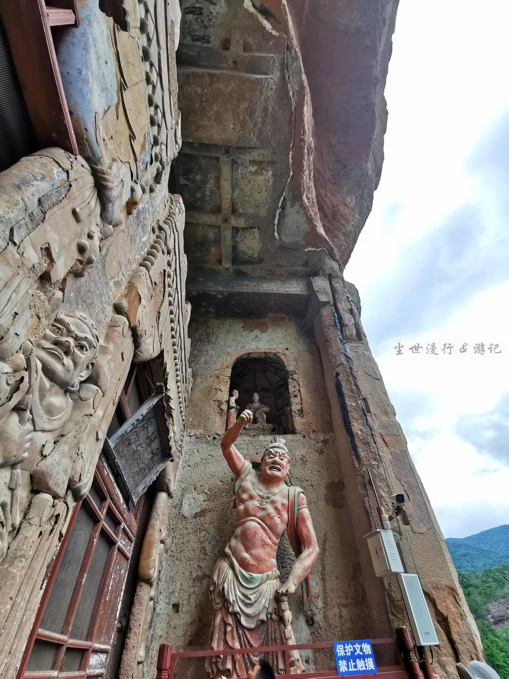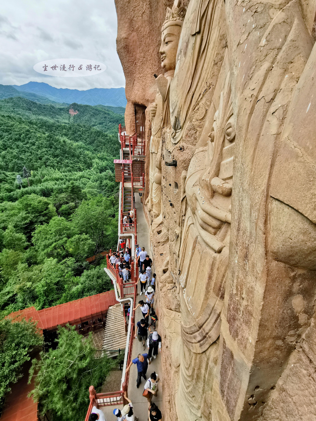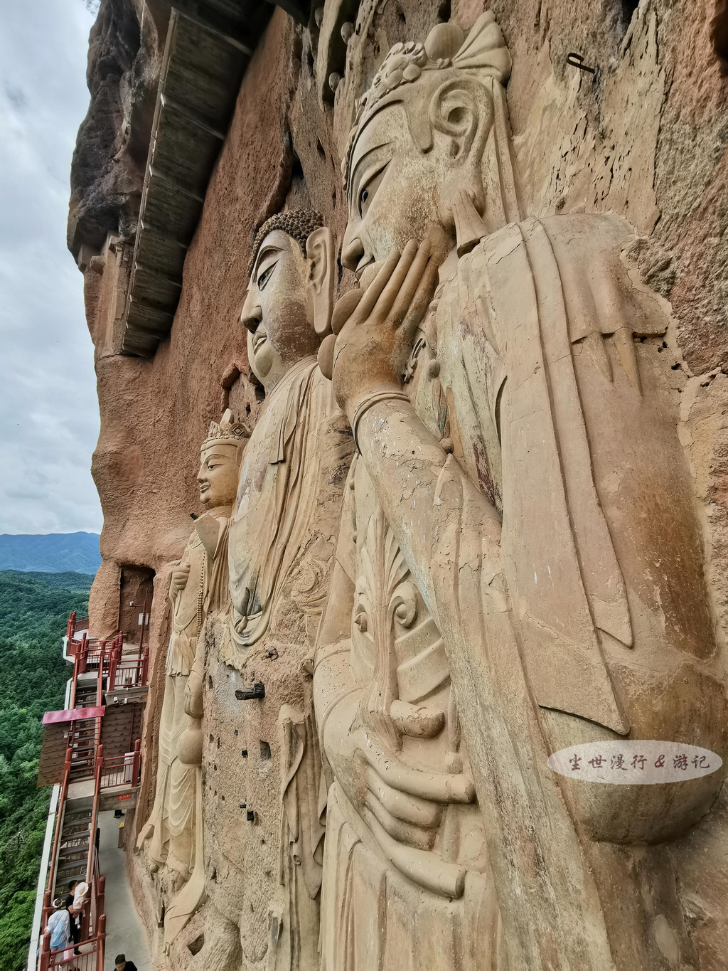 沿栈道走,一抬头是麦积山石窟第13窟-佛与菩萨,十分震撼。
