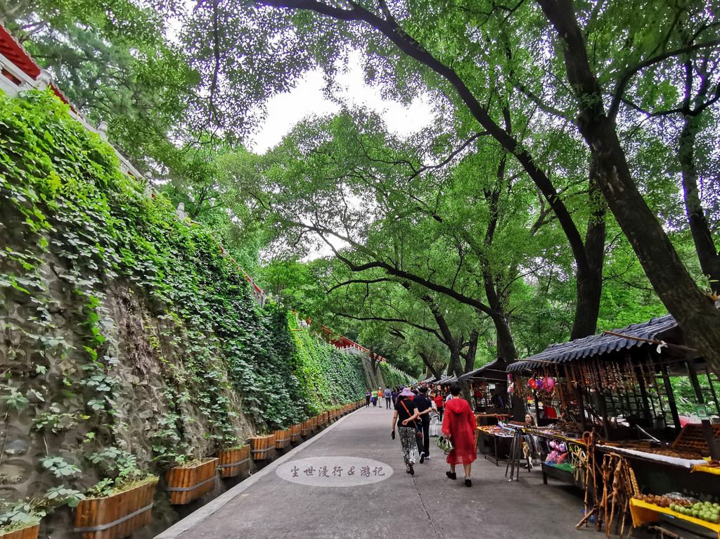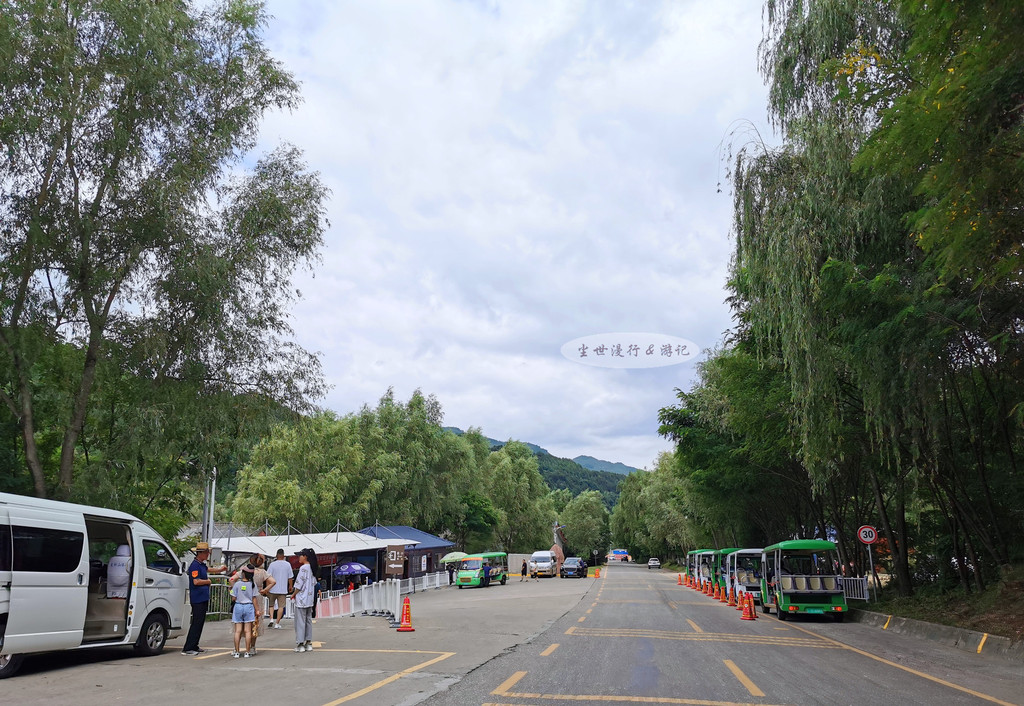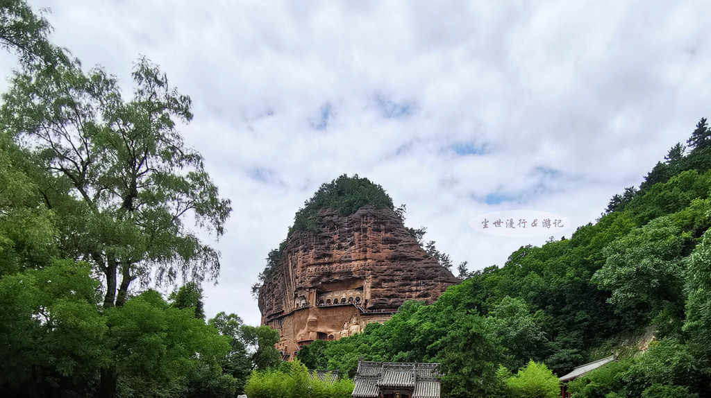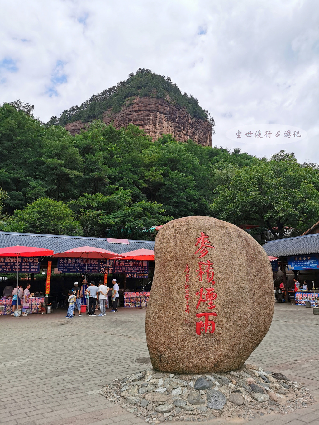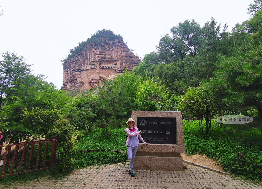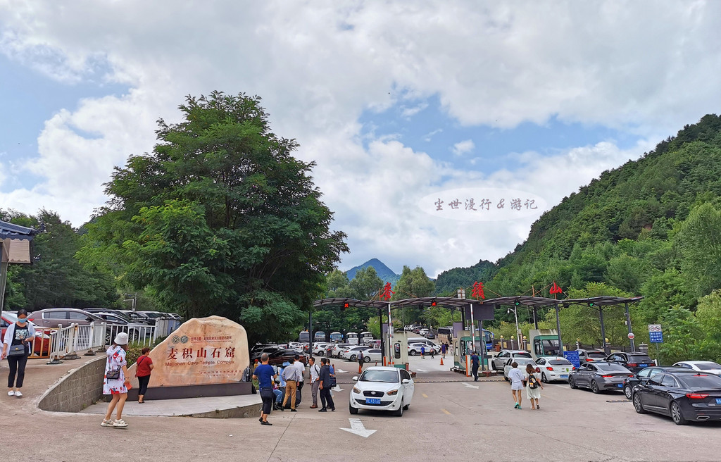 从景区大门乘坐观光车至终点,踏阶而上便是秦州八景之首“麦积烟雨”。