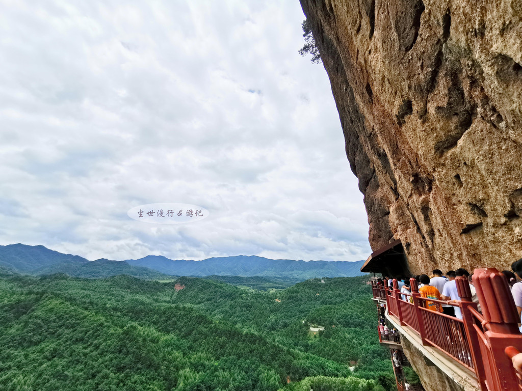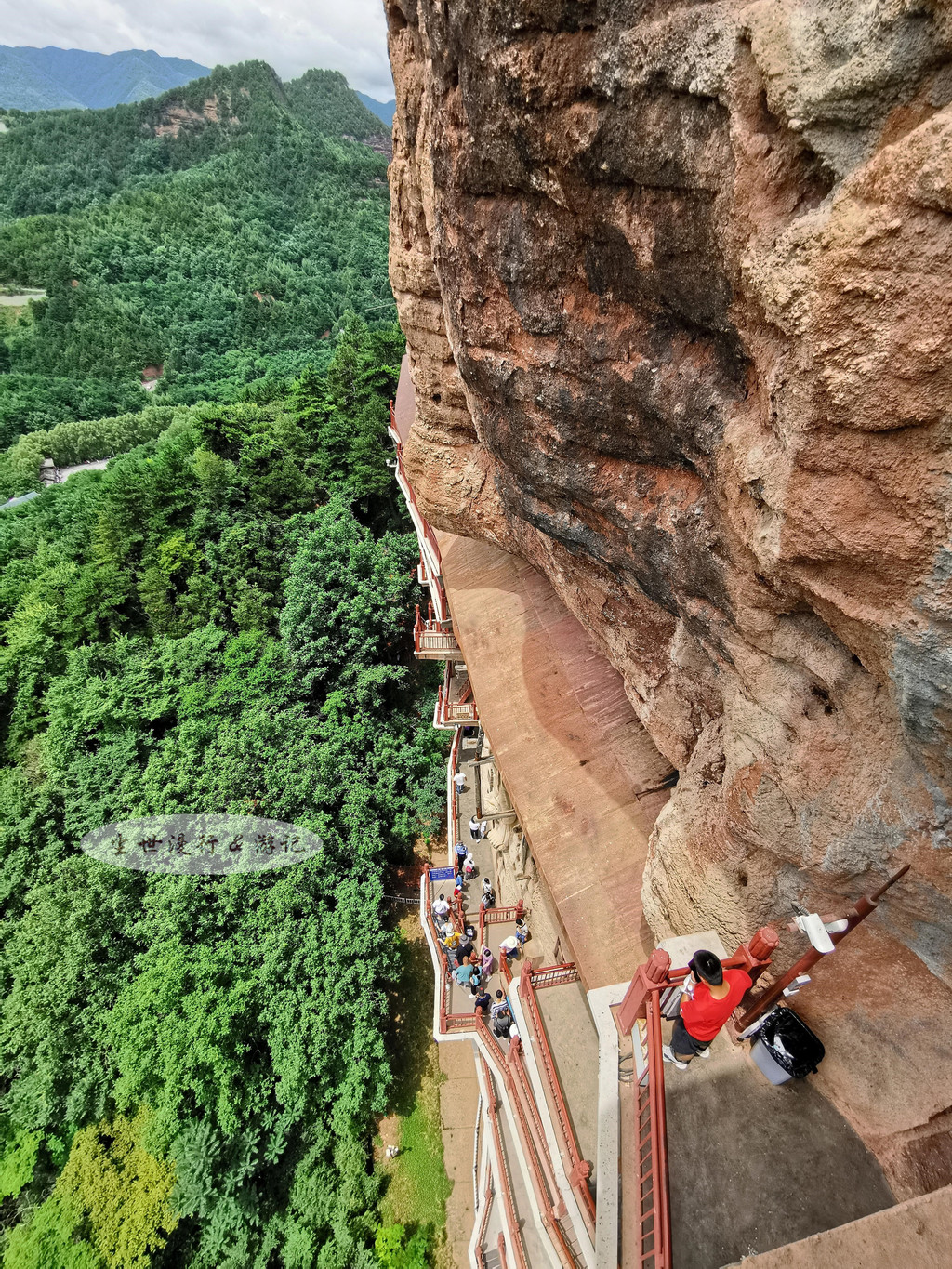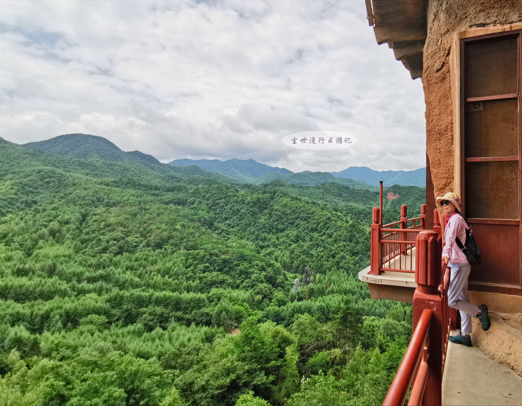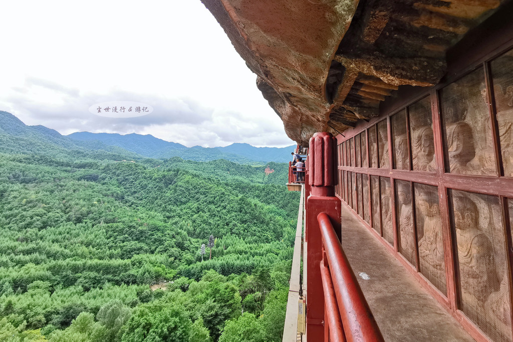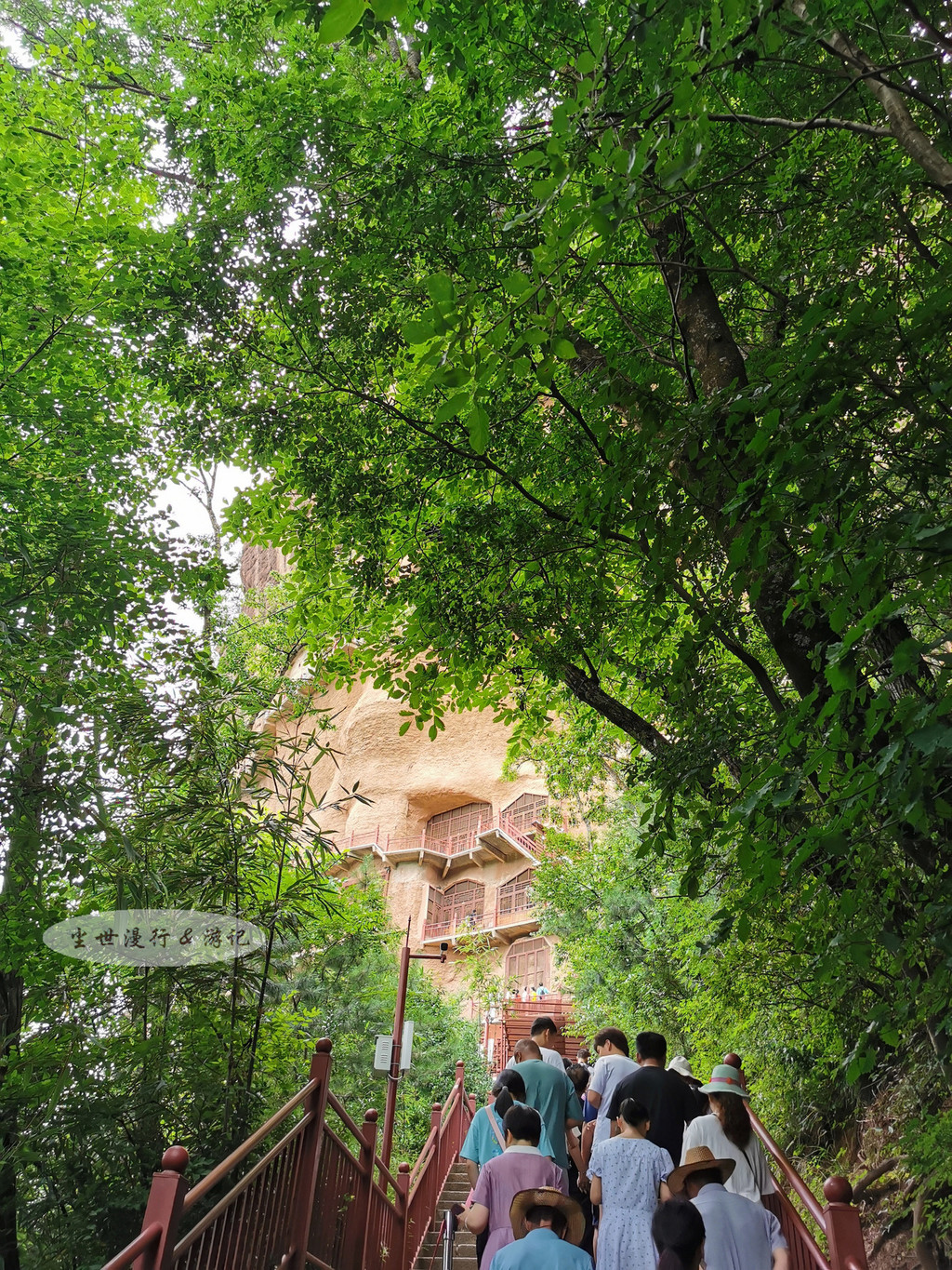 站在麦积山石窟最高处,转身扶拦向南远眺,大地一片苍翠,麦积山置身于茂密的植被中,空气的清新、湿润与凉爽惬意,让人怡然自得。