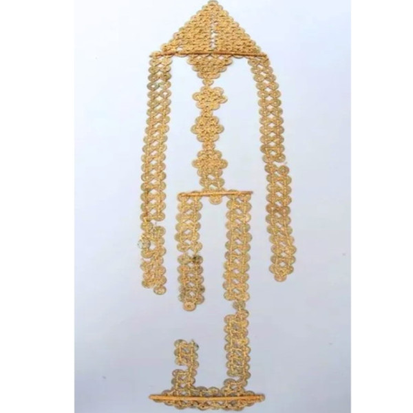1978年对西崖大佛修缮过程中,在大佛胸部发现有幡状钱币璎珞一幅。它由292枚汉、唐、宋等不同时期的钱币用麻绳串联而成,其中以宋钱居多。钱幡长123厘米,宽28厘米。自上而下分别扎束呈等腰三角形、长方形、菱形、圆形、方形和六边形等几何图案,十分精美,较为罕见。