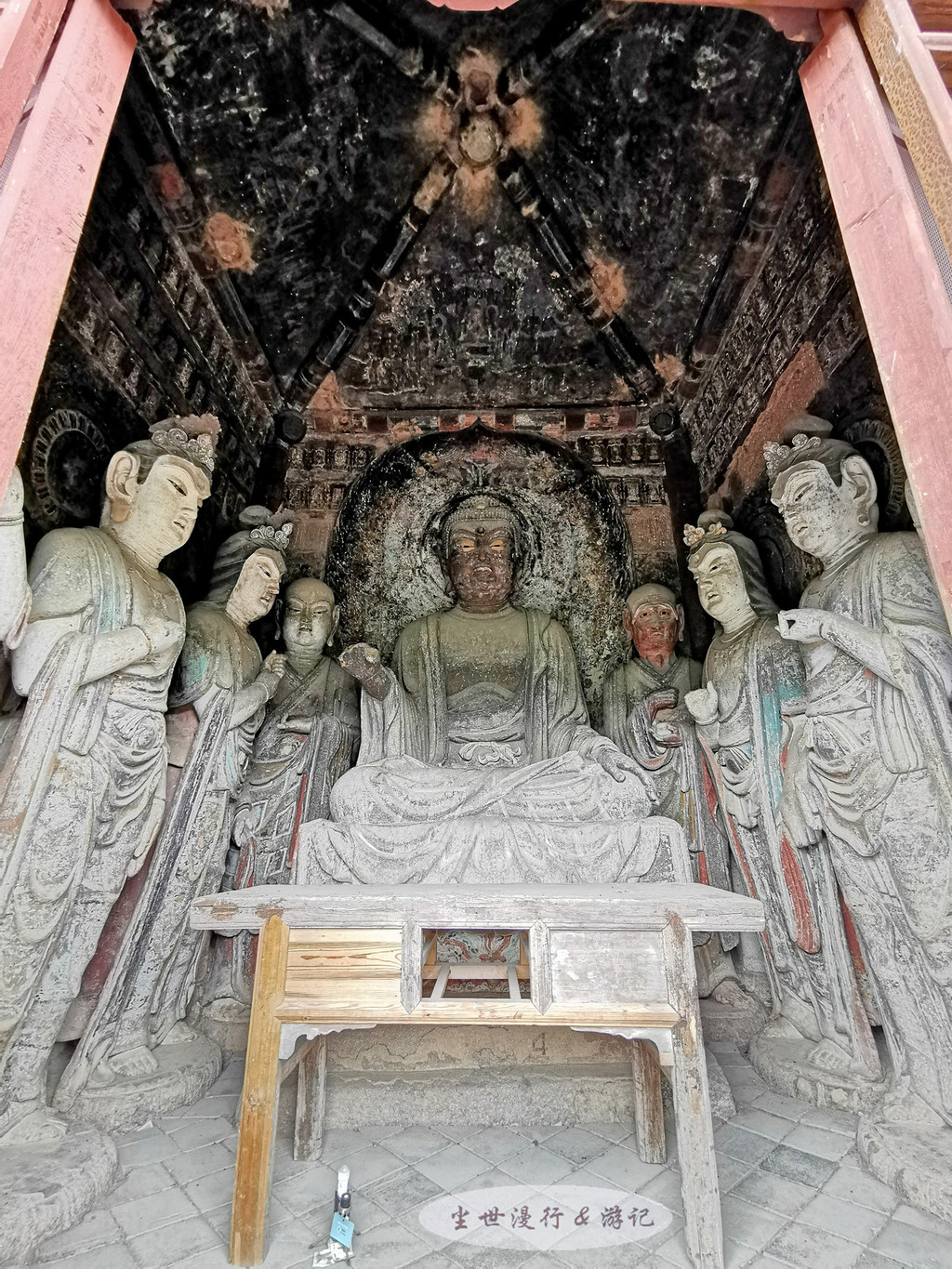 第9窟开凿于北周,各龛内分别是一佛二弟子或二菩萨,龛中主尊组成七佛,现存造像19身,历经宋、明、清重修。