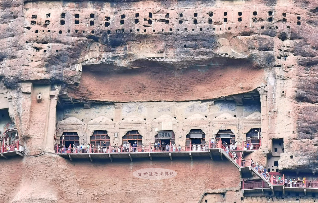 沿石阶而上,从东崖中区进入麦积山石窟。