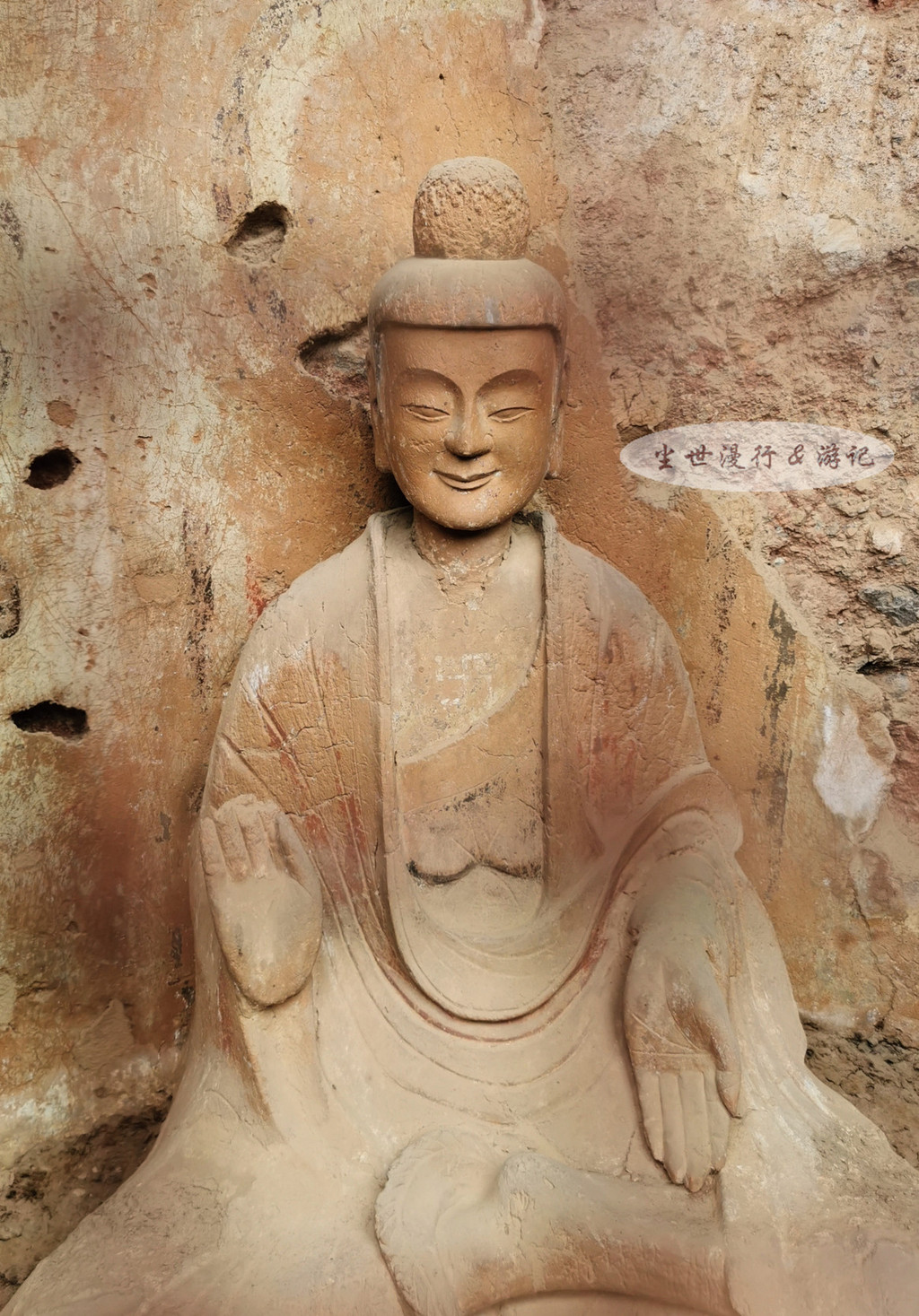 第146窟,佛像中那神秘的微笑,薄唇小口、笑靥微绽,端庄典雅、微微俯视、和蔼可亲,娴静而宽容、矜持且淡然。