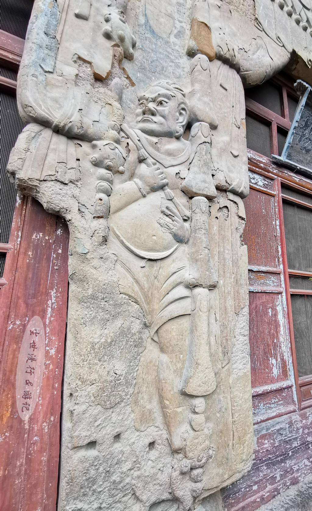 上七佛阁两侧宋塑两身高4.2米的金刚力士,骨骼健壮、肌肉突起、造型夸张,但都强悍无比、气势逼人,塑作技艺高超,是金刚力士中之杰作。
