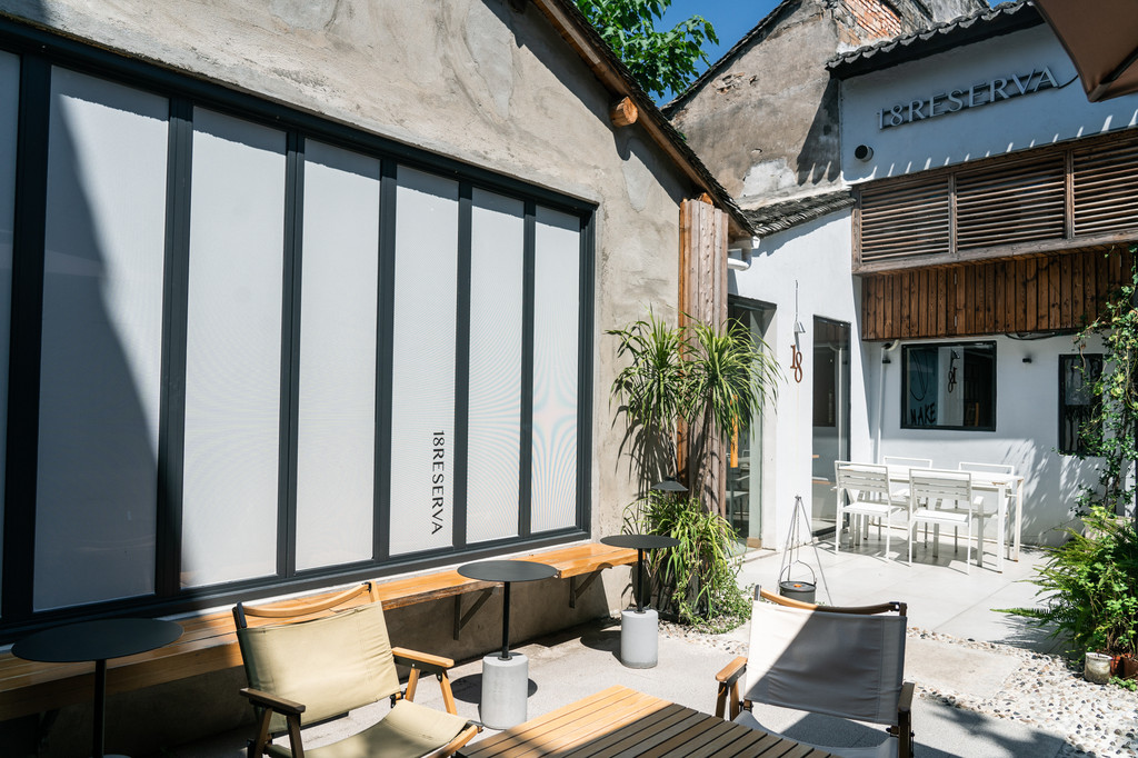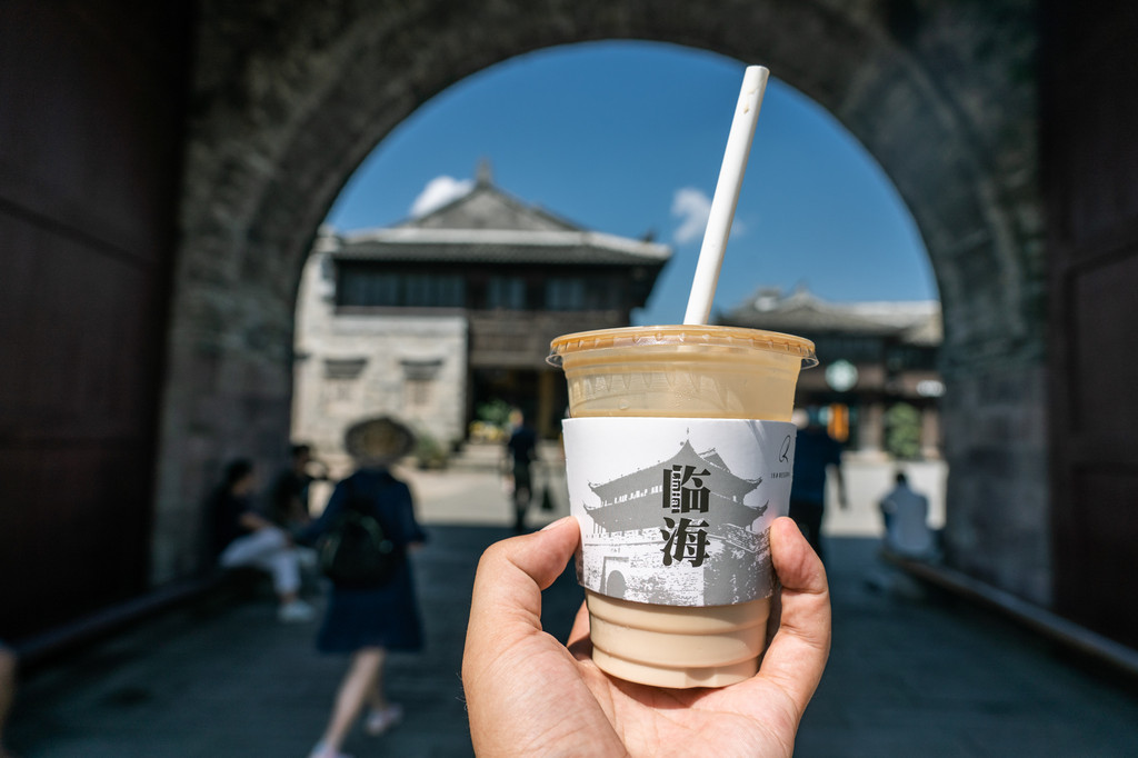 紫阳老街上我非常喜欢的一家文艺咖啡小馆,咖啡小馆临着紫阳老街,门头很古朴江南,但是它后面的小院子却又是另一番景象,纯白INS风融合帐篷主题,午后的光影非常迷人,非常出片。这家咖啡的杯托上还写着“临海”、“江南长城”、“紫阳老街”等字样,非常适合打卡。
