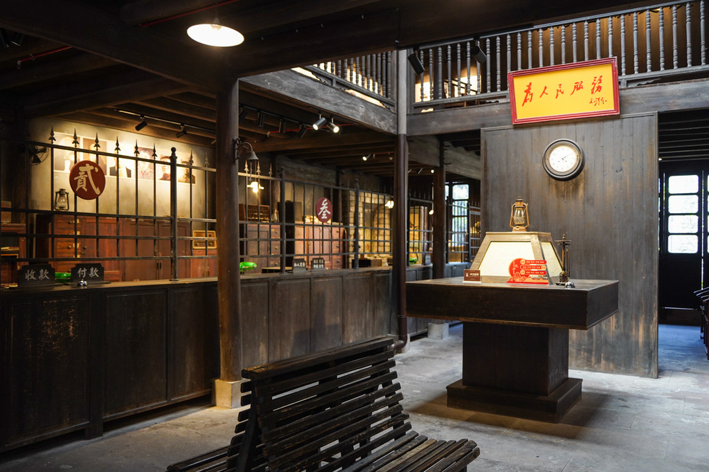 在紫阳街上还保留着中国人民银行台州支行的旧址,这里曾经是侯氏民居,民国25年改为临海浙江地方银行办事处,是临海民国时期最早的一家银行。不需要门票就可以进入,现在里面还依然保留着民国时期银行的格局以及银行职员办公用具。