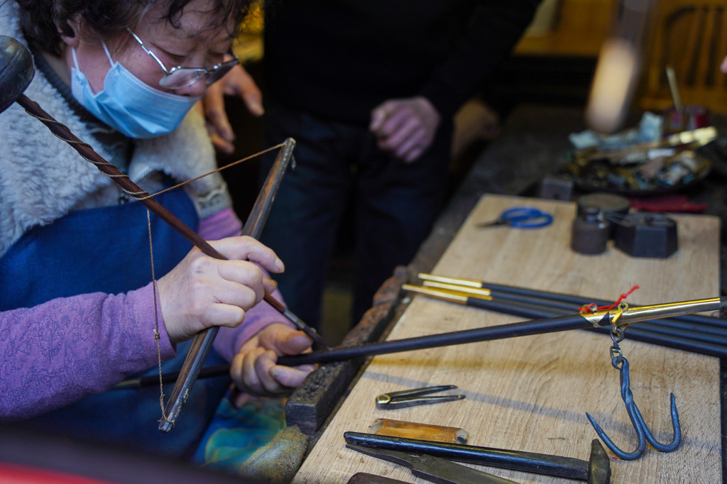 在店铺店铺门口坐着一位上了年纪的老人,依然在制作秤,应该是这家老店的传承人。这些老技艺值得我们一直传承下去。秤的历史源远流长,曾经是每个中国家庭必备的工具。