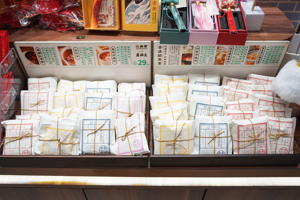 传统的养生茶是包成古时药包的样子,又古朴又新颖。