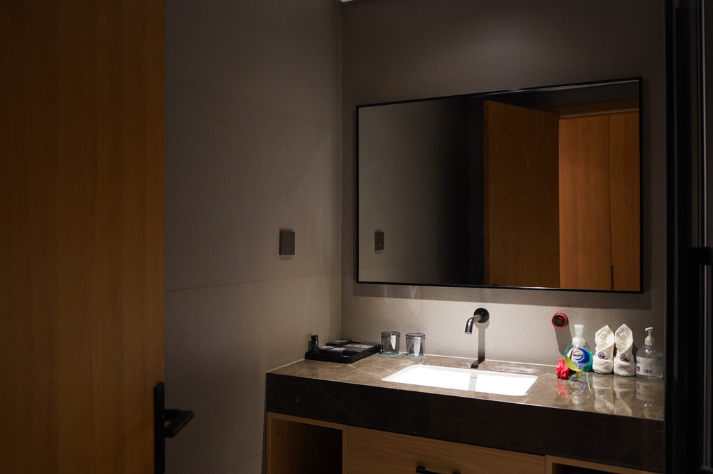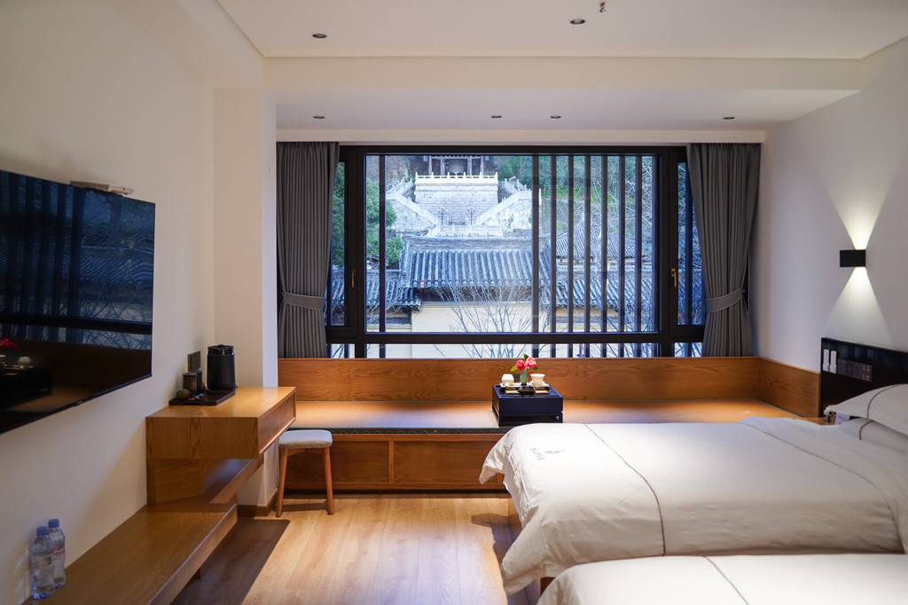 大堂有些古朴,但是房间可是干净又很智能的,窗帘是全自动的,水龙头也是智能的。