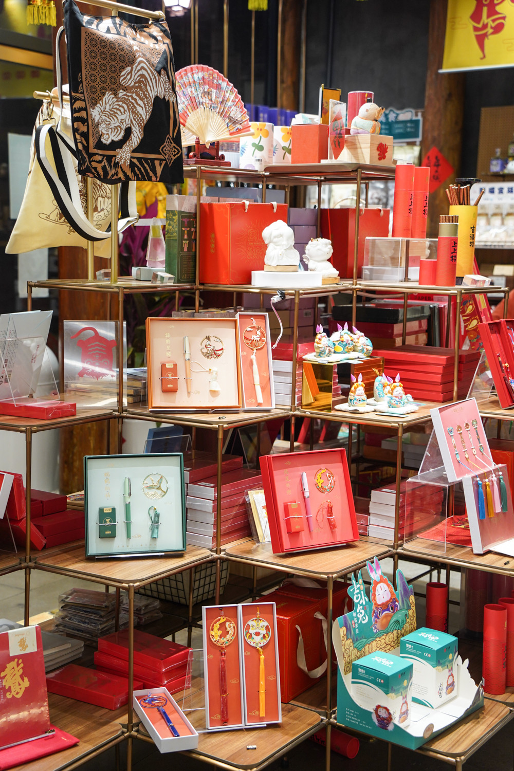 江南赞里面有琳琅满目的文创产品,是台州府城文化与文创作品的完美融合。