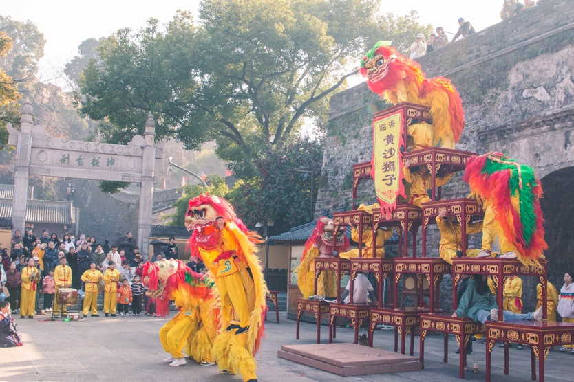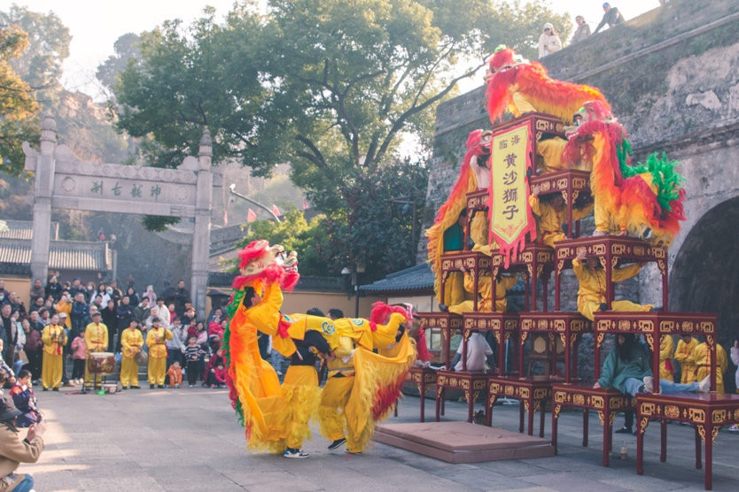 我到台州府城旅行的时候,就有非常精彩的黄沙狮子表演!