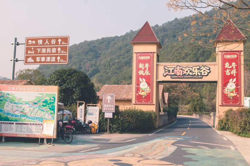 江南欢乐谷位于临海市尤溪镇,从临海市区出发开车半小时内就能到达。