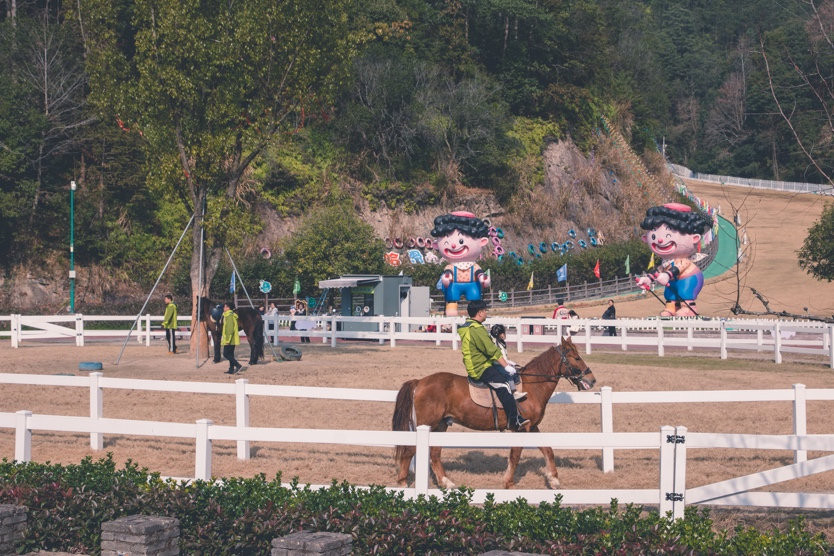 江南欢乐谷还可以骑马,现场有教练指导,小朋友的话教练还能带着骑,教练会耐心地教我们如何给马下指令!