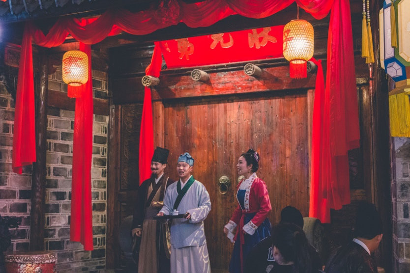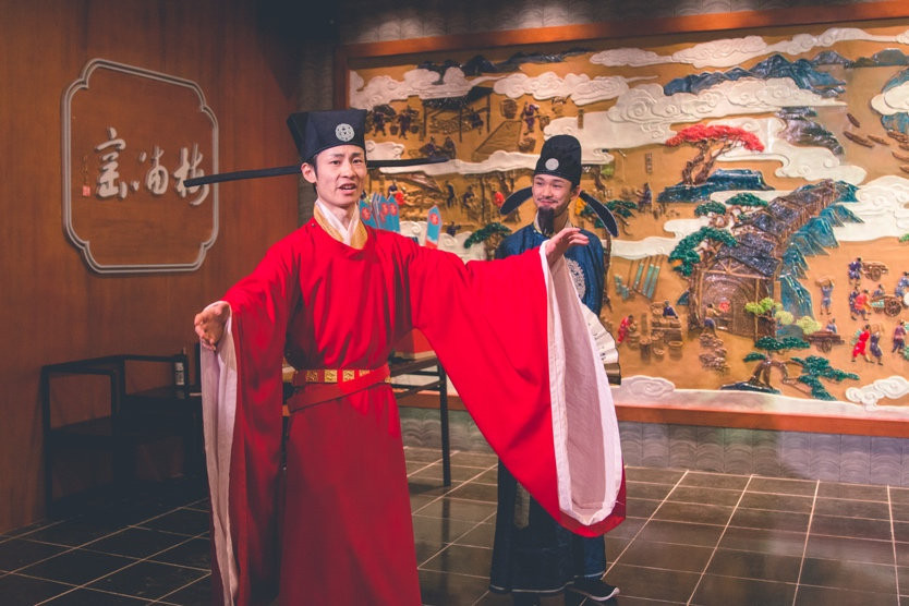 每一个章节,都让观众很有参与感,而且表演就在你的眼前就在身边,还能够与“古人”进行沟通交流,饮酒对诗品茶,实在太梦幻了!