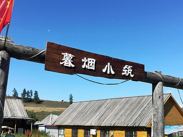 边境小镇有民宿提供住宿,同样是小木屋“暮烟小筑”、“寒月山庄”冠名不俗。