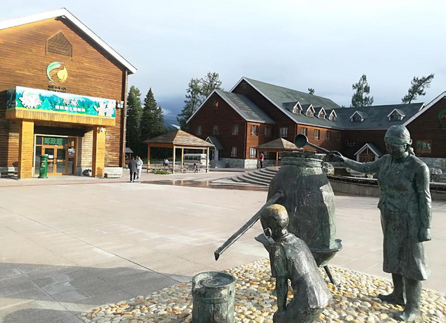 喀纳斯游客服务中心附近的街道、小广场收拾装扮的特色十足。
