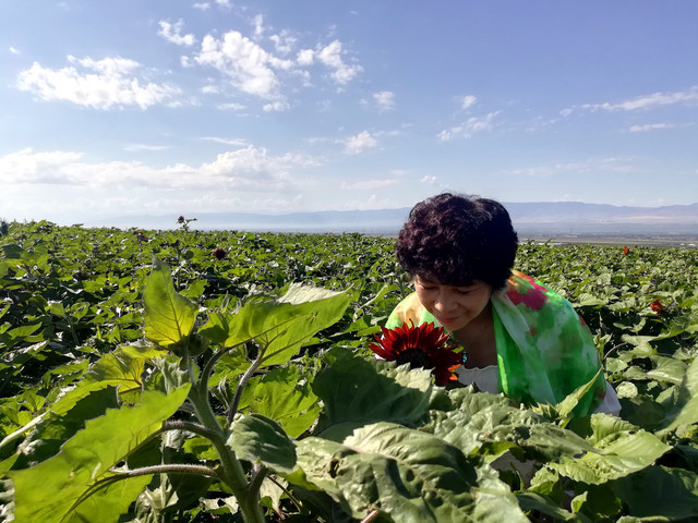 这里还种植了一片紫红色的向日葵,可能是品种的原因吧,目前只有一部分开花。