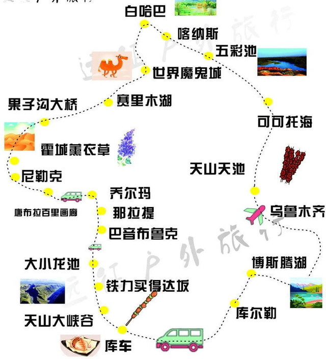 2022年七月我与老伴又一次乘火车来到新疆。这是十年后,我们再次结伴来新疆旅游,这次行程安排的挺好:乌鲁木齐集合--博斯腾湖--天山大峡谷--独庫公路--乔尔玛—那拉提--霍城薰衣草~~~果子沟大桥~~赛里木湖~~世界魔鬼城~~喀纳斯~~白哈巴~~五彩滩~大巴车跟着一路游玩转一圈。详看旅游图。