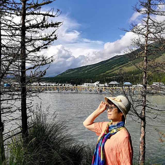 我们一行人先去喀纳斯老街小木屋入住。简单洗漱一下,分别结伴而行在景区内行走山坡林地、观赏湖面波光。