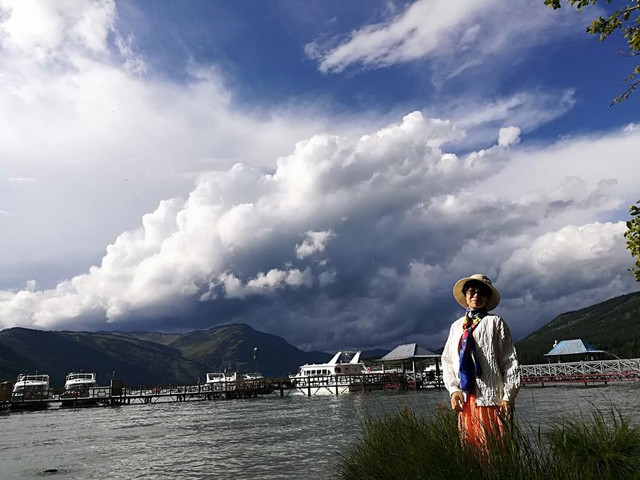 沿湖看景:云层变幻、湖水湛蓝,今时此地、天上人间。